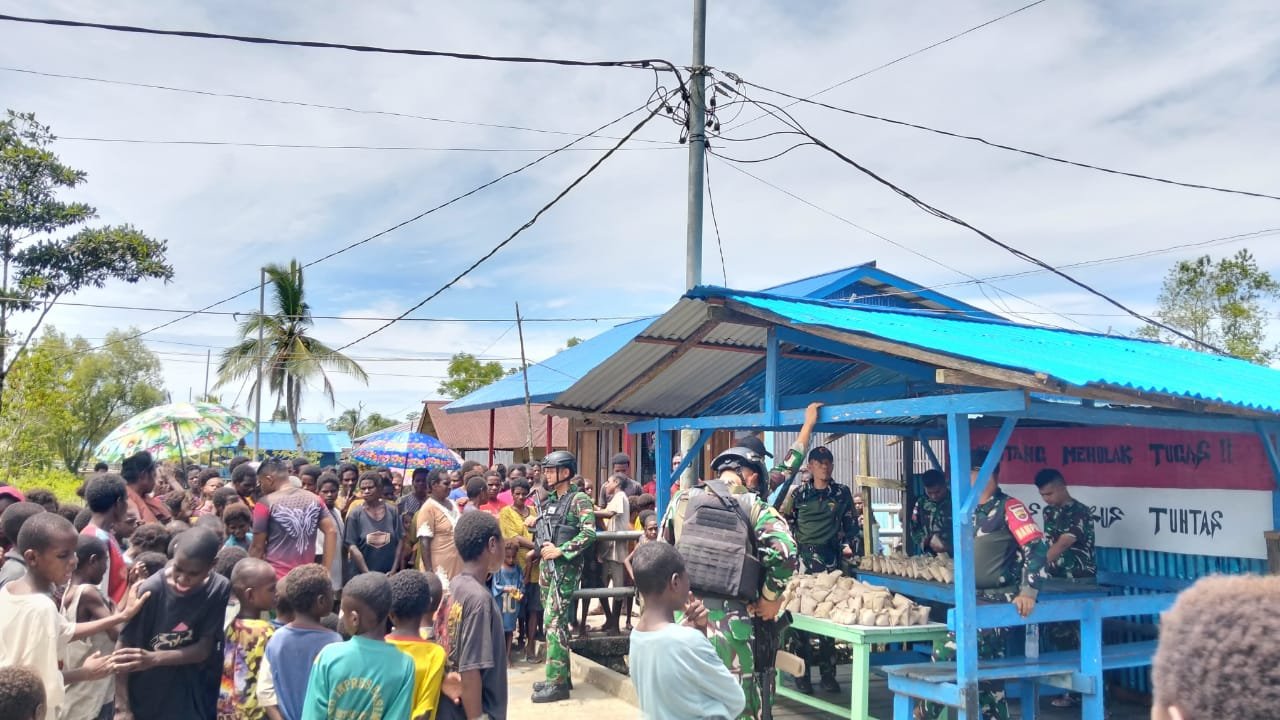 Fayit, Minggu,16/11/2025 – Dalam rangka memeriahkan Minggu Berkah, Pos Satuan Tugas Batalyon Infanteri 123/Rajawali, khususnya Pos Fayit, menggelar aksi sosial dengan membagikan nasi bungkus gratis kepada masyarakat di sekitaran Pos Fayit. Kegiatan ini bertujuan untuk mempererat tali silaturahmi antara TNI dan masyarakat serta membantu warga yang membutuhkan.