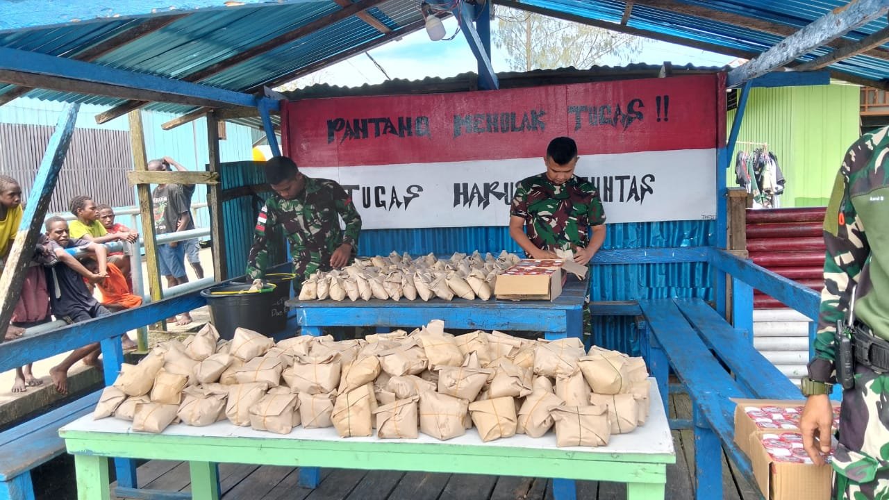 Kegiatan pembagian nasi bungkus ini dilaksanakan di sekitaran Pos Fayit. Para personel Satgas Yonif 123/Rajawali dengan penuh semangat membagikan ratusan nasi bungkus kepada warga, pedagang kaki lima, hingga warga kurang mampu yang melintas di sekitar pos.