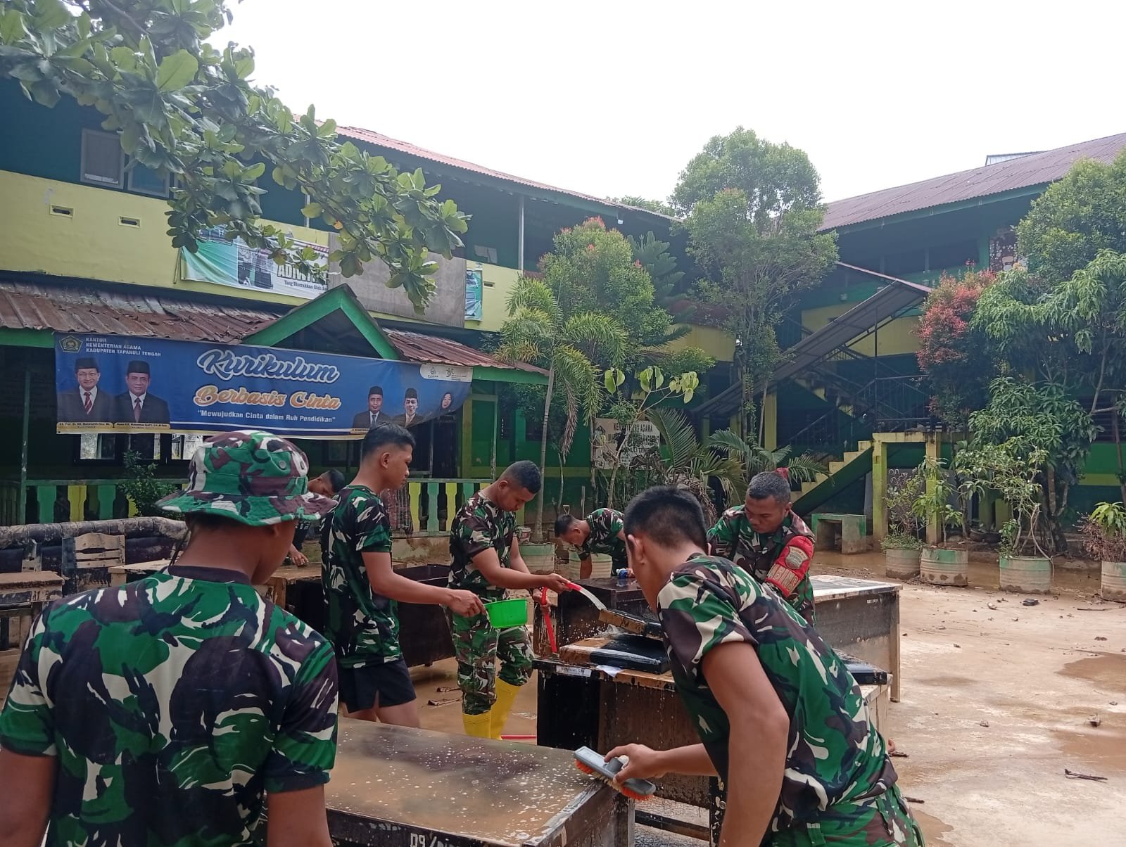 Satgas Gulbencal Kodam I/BB Tuntaskan Pembersihan SD MIN 7 Sibuluan Nalambok Pascabencana Banjir dan Tanah Longsor