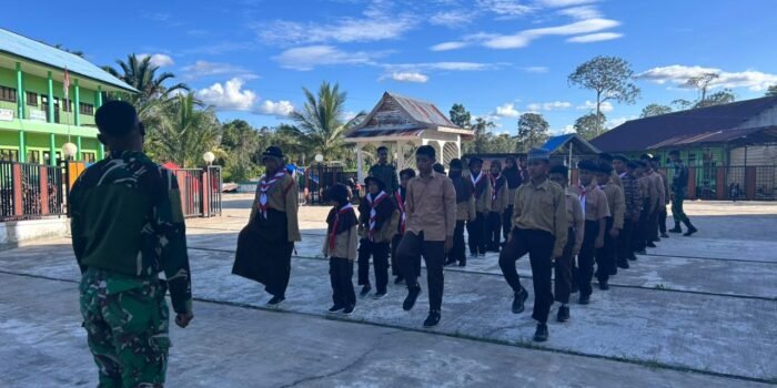 Assue — Pos Asgon Satgas Yonif 123/Rajawali kembali menunjukkan komitmennya dalam mendukung dunia pendidikan di wilayah penugasan. Pada Sabtu (06/12/2025) personel Pos Asgon melaksanakan kegiatan pelatihan Pramuka bagi para siswa dari SD As’adiah Eci, MI As’adiah Eci, dan SMP As’adiah Assue yang berlokasi di Kampung Eci, Distrik Assue, Kabupaten Mappi.