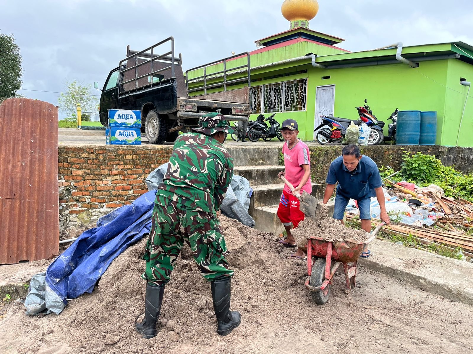 Kegiatan ini dilakukan bersama masyarakat setempat sebagai bentuk kepedulian dan dukungan terhadap sarana ibadah di wilayah binaan. Warga terlihat antusias bergotong royong bersama prajurit TNI dalam memperbaiki fasilitas masjid agar lebih nyaman digunakan.