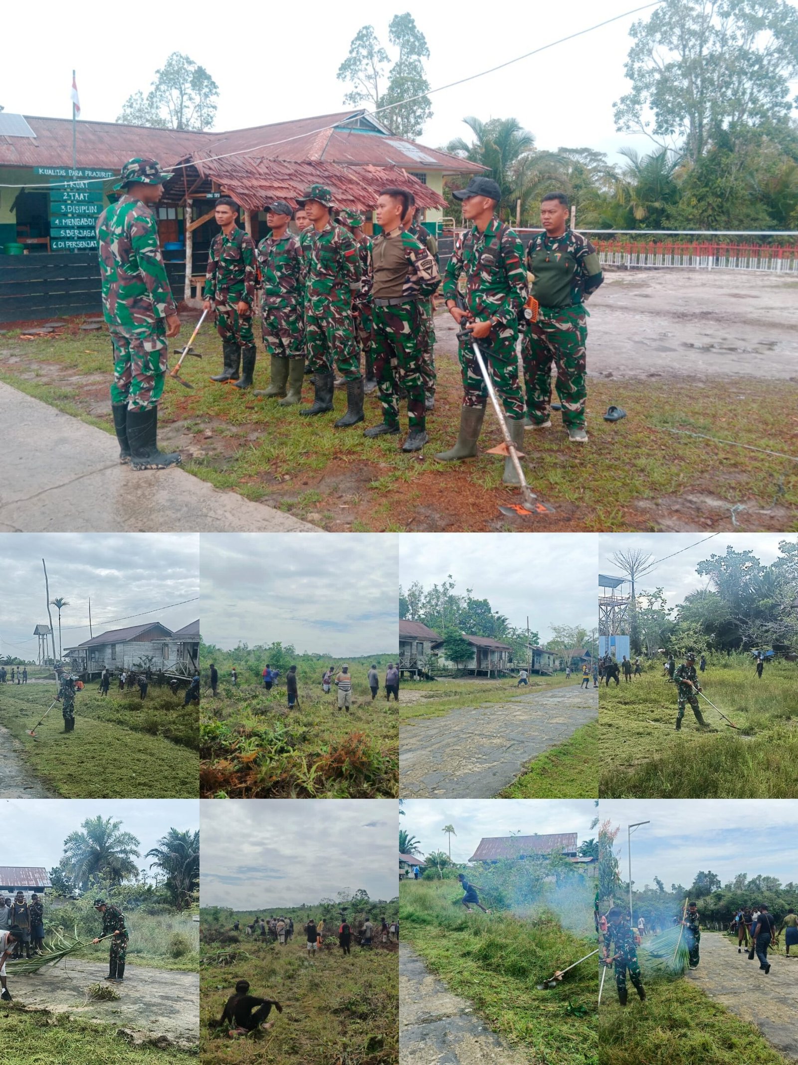 Dalam kegiatan karya bakti kali ini, personel Pos Kaibar bersama warga Kampung Amazu bahu-membahu membersihkan lingkungan dan melakukan perbaikan infrastruktur dasar serta menjaga kebersihan lingkungan.