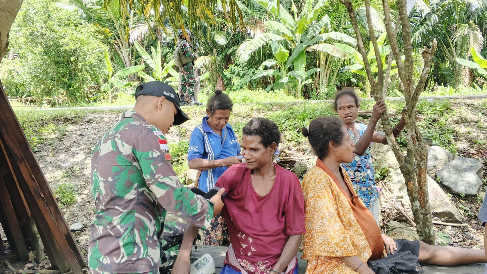 Dipimpin oleh Letda Ckm Dedy Damanik, personel Pos Sawiyatami turun langsung dari rumah ke rumah untuk memeriksa kesehatan warga, memberikan obat, serta berdialog hangat dengan masyarakat.