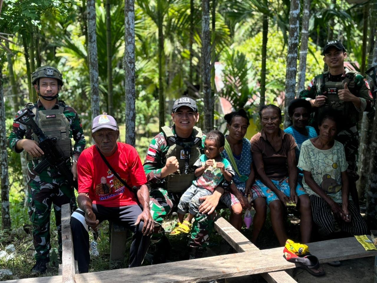 Salah seorang warga, Gernus Tabuni (40), menyampaikan rasa terima kasihnya kepada personel Pos Wembi.