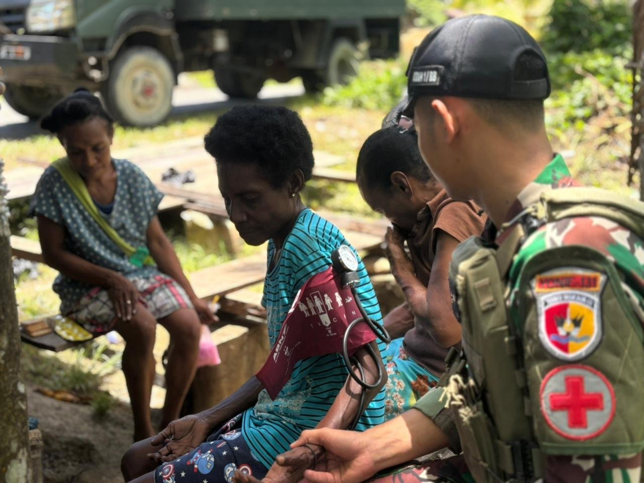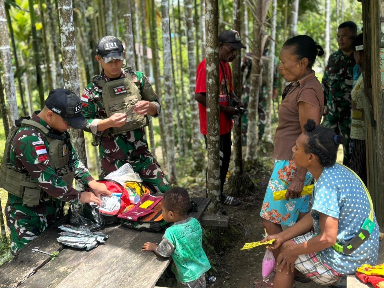 Kab. Keerom – Satgas Pamtas RI-PNG Yonif 131/Brajasakti terus menunjukkan kepeduliannya terhadap kesehatan masyarakat di perbatasan. Kali ini, personel Pos Wembi yang dipimpin Serda Andika melaksanakan pelayanan kesehatan secara door to door di Kampung Wembi, Distrik Mannem, Kabupaten Keerom, Senin (22/9/2025).