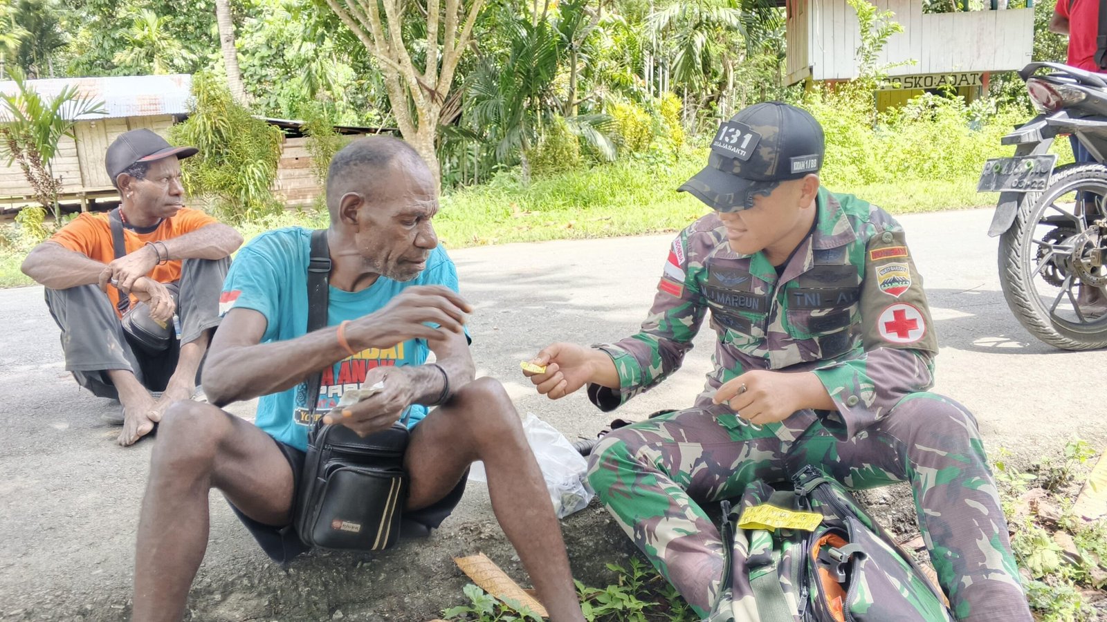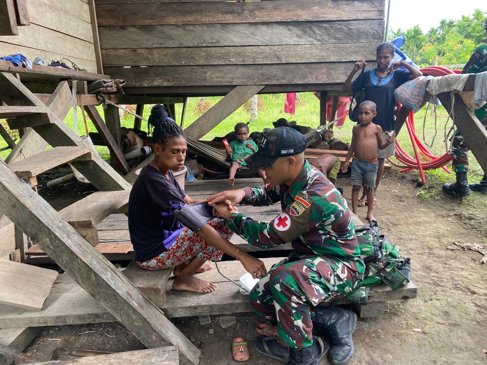 Satgas Yonif 131/Brajasakti terus hadir membawa manfaat bagi masyarakat di wilayah perbatasan. Melalui Pos Sawiyatami, personel satgas yang dipimpin Serda Prayogi melaksanakan pelayanan kesehatan bagi warga Kampung Sawiyatami, Kabupaten Keerom.