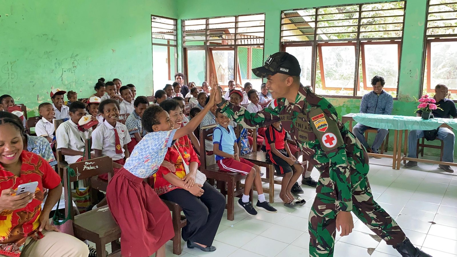 Salah satu siswa, Adik Holmes (11), mengaku senang karena selain mendapat ilmu baru, ia juga bisa menikmati makanan bergizi yang dibagikan prajurit TNI. “Senang sekali, kami jadi tahu cara hidup sehat,” ujarnya polos.