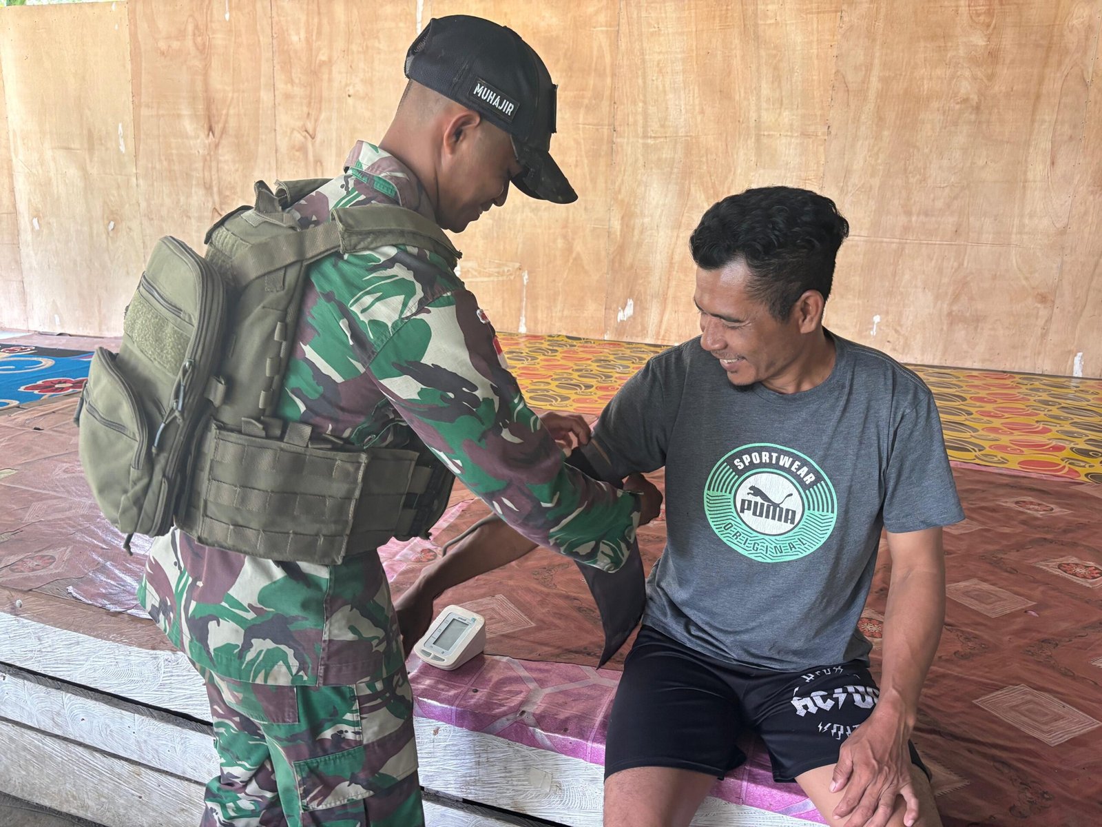 Dengan penuh kehangatan, prajurit TNI memeriksa kesehatan warga, memberikan obat-obatan, serta menyampaikan edukasi sederhana tentang pola hidup bersih dan sehat. Kehadiran mereka disambut antusias, terlebih bagi masyarakat yang tinggal jauh dari fasilitas kesehatan.
