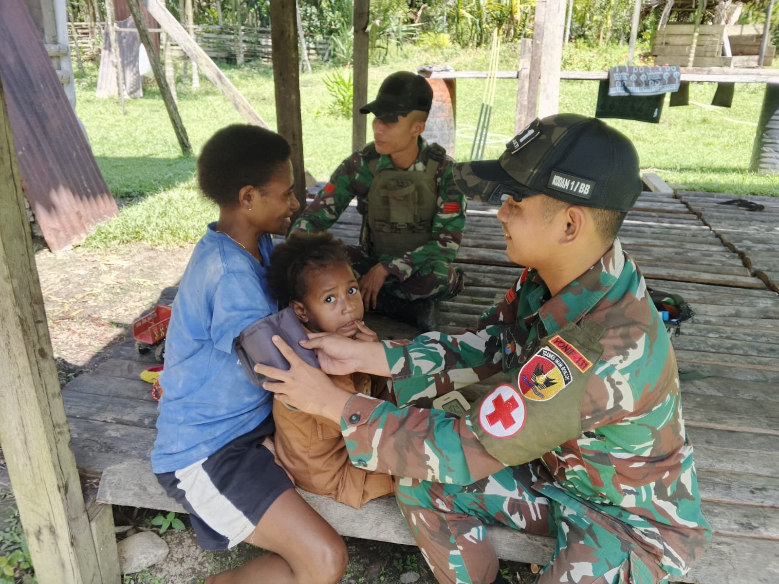 Dalam kegiatan tersebut, tim kesehatan Satgas memberikan pelayanan langsung kepada warga, salah satunya kepada Bapak Besay Urofbami (35). Warga merasa sangat terbantu dengan kehadiran prajurit yang selalu sigap memberikan pengobatan dan pendampingan kesehatan.
