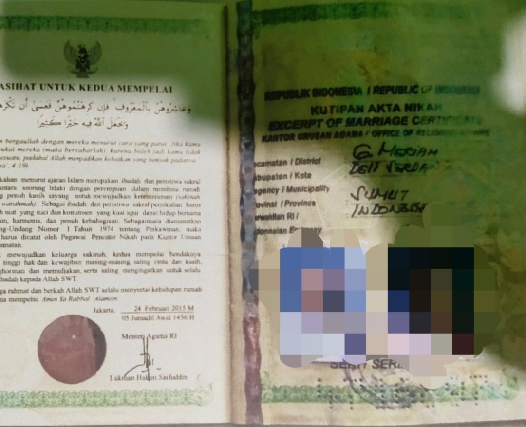 Informasi yang dihimpun menunjukkan adanya keganjilan pada nomor register buku nikah yang diserahkan [H] ke meja hijau. Saat dikonfirmasi ke Kantor Urusan Agama (KUA) terkait di wilayah Deli Serdang, data pernikahan tersebut kabarnya tak ditemukan dalam buku besar.