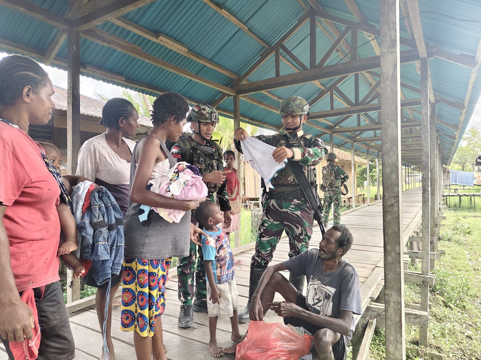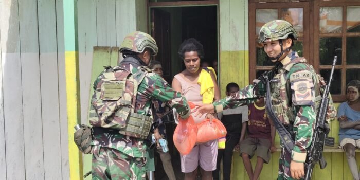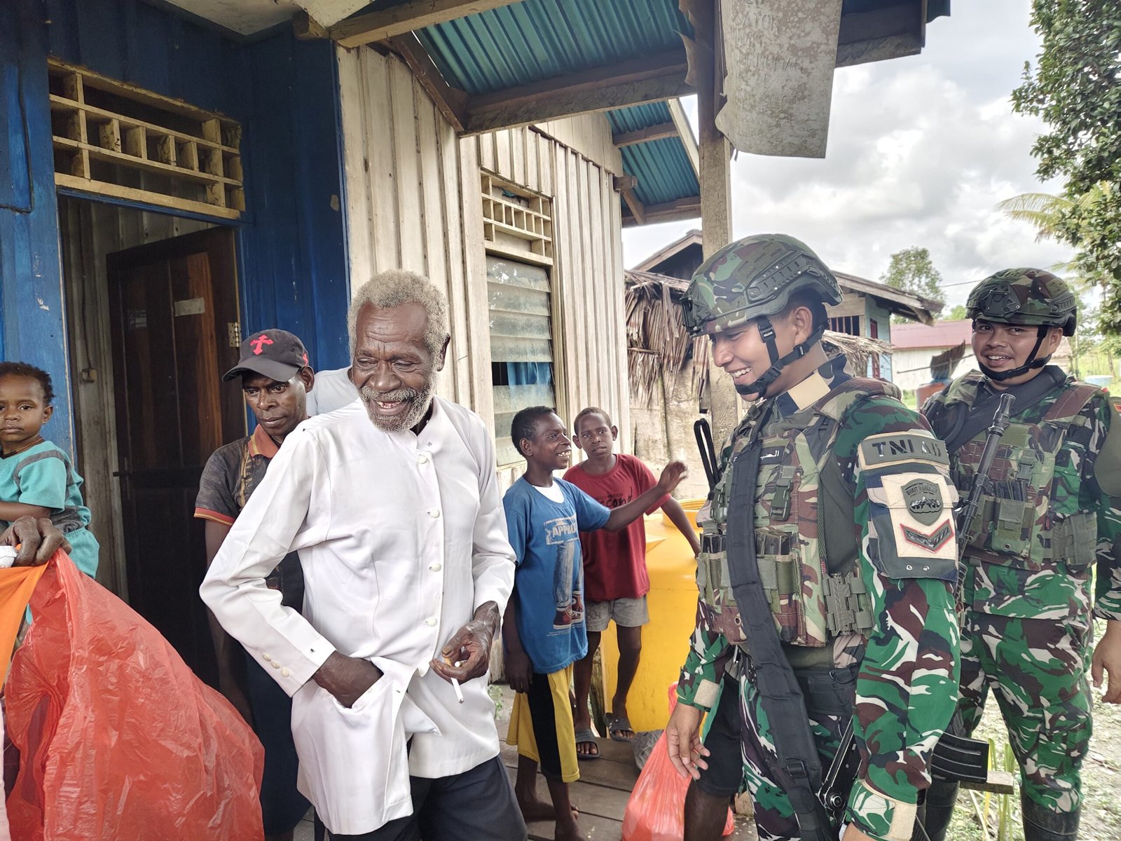 Suator – Satgas Kewilayahan Yonif 123/RJW Pos Suator melaksanakan kegiatan pembagian Sembako dan Sargal kepada masyarakat di Suator, Kab. Mappi, Prov. Papua Selatan.Sabtu (29/11/2025).