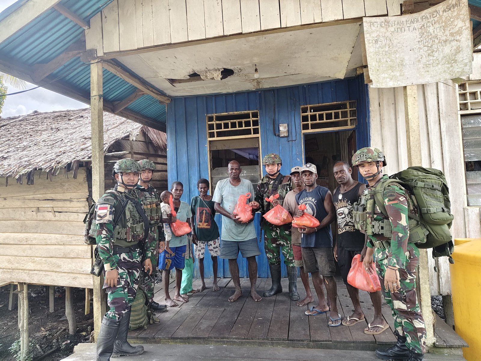 Suator – Satgas Kewilayahan Yonif 123/RJW Pos Suator melaksanakan kegiatan pembagian Sembako dan Sargal kepada masyarakat di Suator, Kab. Mappi, Prov. Papua Selatan.Sabtu (29/11/2025).
